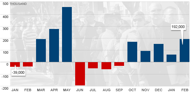The economists were predicting that the economy had added 190,000 jobs in February.