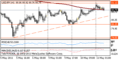 USD/JPY: the pair shown high in the field of Y81,11 then decreased in around Y80,75.