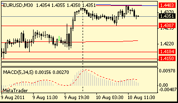 EUR/USD: on results of yesterday's session the pair decreased in around $1.4330.