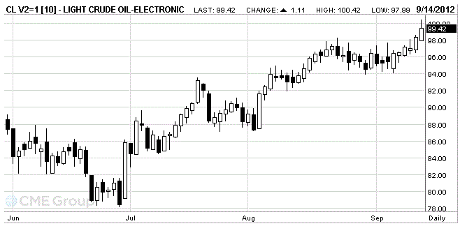 Today the cost of crude oil exceeded $ 100 a barrel, which was the first time since May, as the Federal Reserve announced that it would buy mortgage-backed securities to stimulate economic growth in the world's largest economy.