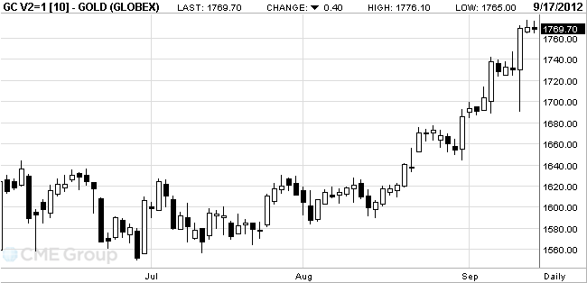 Last week, the Fed said that he was going to keep interest rates near zero until mid-2015, causing gold prices rose by 2 percent in one day.