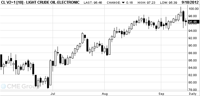 Oil for October delivery fell as much as $1.23 to $95.39 a barrel in electronic trading on the New York Mercantile Exchange.