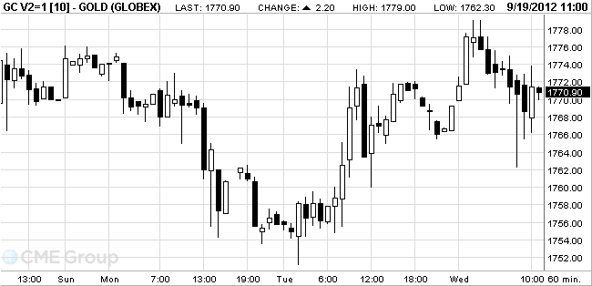 October futures price of gold on the COMEX is now 1770.9 dollars per ounce.