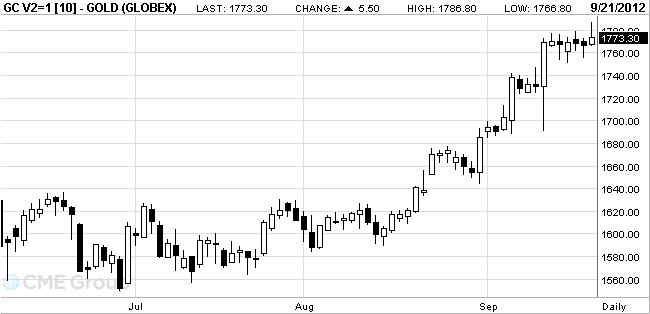 October futures price of gold on the COMEX is now 1773.3 dollars per ounce.