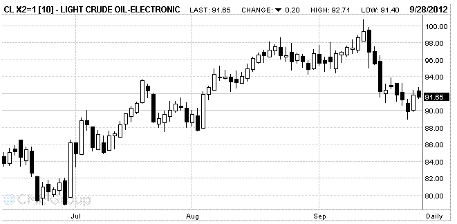 October futures price of U.S. light crude oil WTI (Light Sweet Crude Oil) on the NYMEX is now $91,58 per barrel.