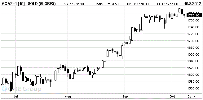 October futures price of gold on the COMEX is now 1775.1 dollars per ounce.
