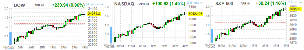 The main US stock indexes rose strongly on Wednesday, despite news of China's plans to introduce retaliatory measures to introduce duties from the US.