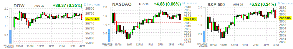 Most of the components of DOW have finished trading in positive territory (19 out of 30). Leader of the growth were shares of NIKE, Inc. (NKE, + 3.15%). Outsider were shares Walmart Inc. (WMT, -1.90%).