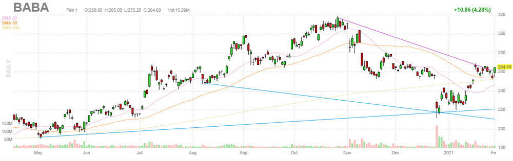 BABA fell to $263.40 (-0.49%) in pre-market trading.