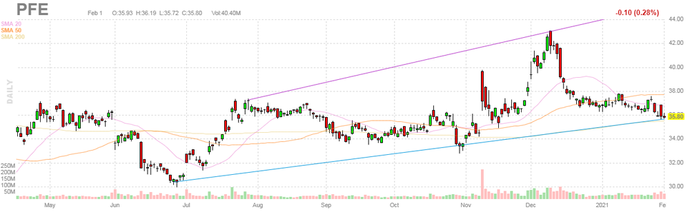 PFE rose to $36.00 (+0.56%) in pre-market trading.