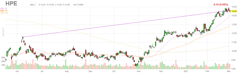 HPE traded at $14.50 (0.00%) in pre-market trading.