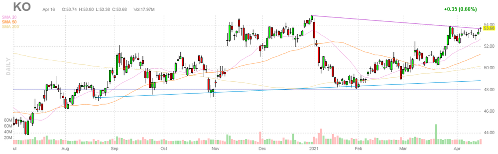 KO rose to $54.20 (+0.97%) in pre-market trading.