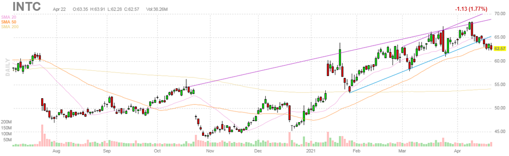 Intel (INTC) reported Q1 FY 2021 earnings of $1.39 per share (versus $1.45 per share in Q1 FY 2020), beating analysts’ consensus estimate of $1.14 per share.