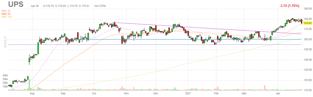 UPS rose to $188.00 (+6.93%) in pre-market trading.