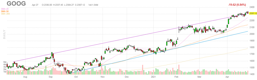 GOOG rose to $2430.00 (+5.33%) in pre-market trading.
