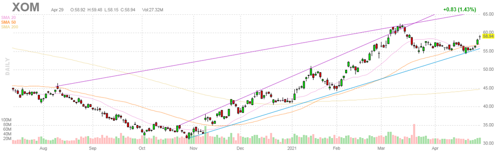 Exxon Mobil (XOM) reported Q1 FY 2021 earnings of $0.65 per share (versus -$0.14 per share in Q1 FY 2020), beating analysts’ consensus estimate of $0.53 per share.