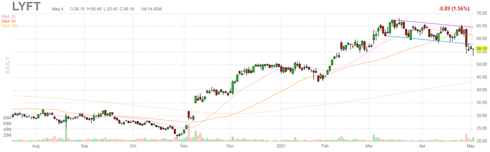 Lyft (LYFT) reported Q1 FY 2021 loss of $0.35 per share (versus -$1.31 per share in Q1 FY 2020), being better than analysts’ consensus estimate of -$0.55 per share.