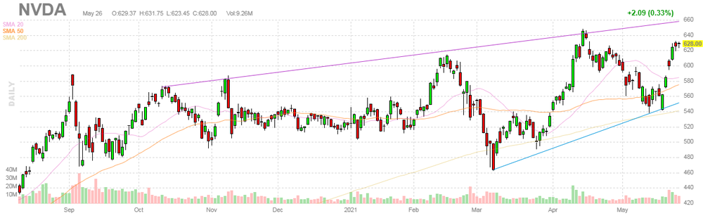 NVDA rose to $631.25 (+0.52%) in pre-market trading.
