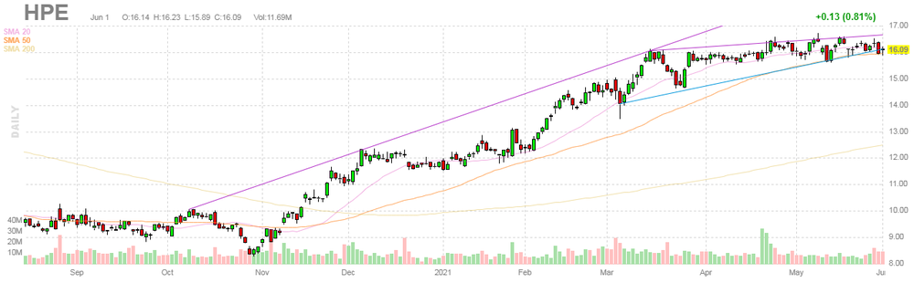 HPE closed Thursday's trading session at $16.09 (+0.81%).