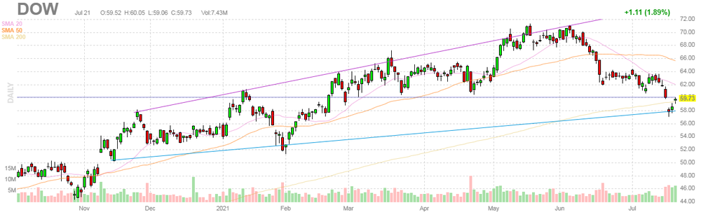 DOW rose to $60.57 (+1.41%) in pre-market trading.