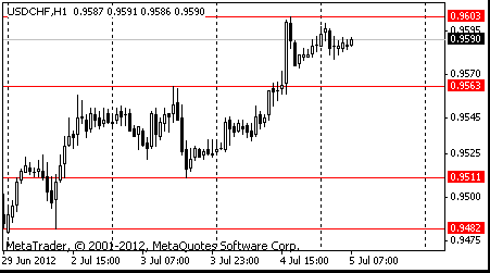 Resistance 1: Chf0.9630 (76,4% FIBO $ 0,9465 - $ 0,9680, June 25 high)