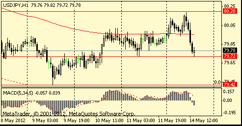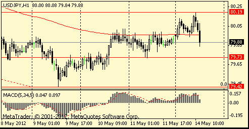 USD/JPY: the rate showed high in Y80,20 area. But later the pair fell, reached area of May 11 low Y79,70.