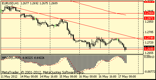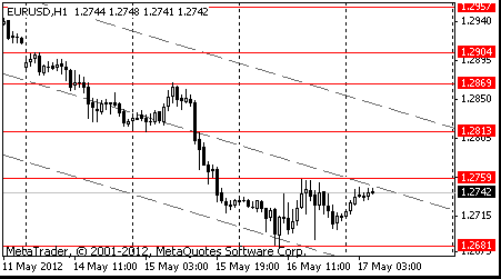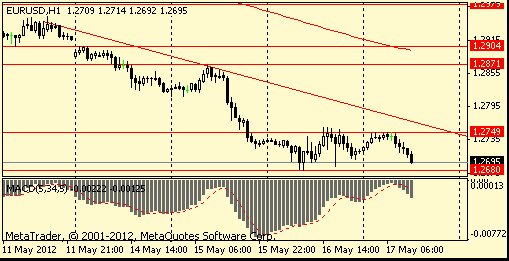 EUR/USD: yesterday the pair traded about May 15 low $1.2720.