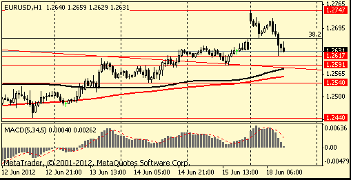 EUR/USD: during European session the pair continued to decrease, reached $1.2620 area.