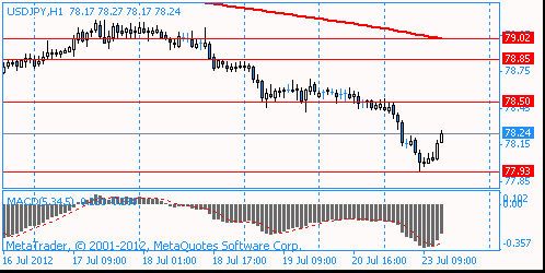 USD / JPY: during the Asian session the pair fell to Y78.00.
