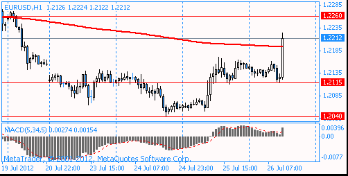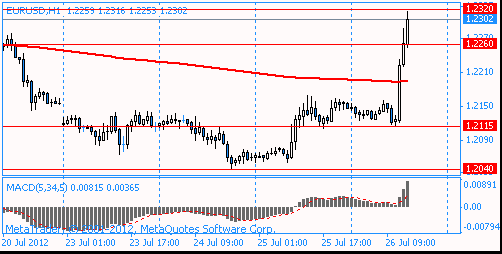 The main event of the European session was the presentation of the ECB Mario Draghi, who said that the regulator is ready to do any measure necessary for the salvation of the euro-zone collapse. At the same time Draghi said that the euro zone is much stronger than many people think, and the deficit in the European Union is less than in the United States. In addition, he stressed that the last EU summit was very productive. According to Draghi, first and foremost, you must install the banking supervision, which is well modeled. At the same time to exit from the crisis need to do more integrated euro area.