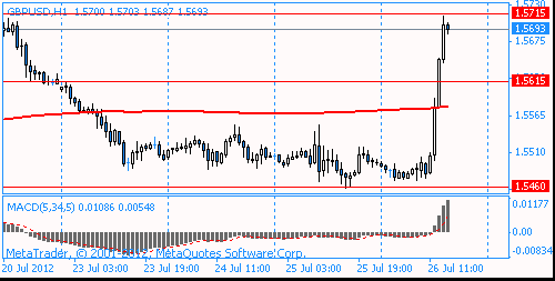 The pound rose 1.5%, showing the biggest intraday gain since December 31, 2010. This was due to information that European politicians will make all efforts to contain the debt crisis, which ultimately lead to improved prospects for the UK economy.