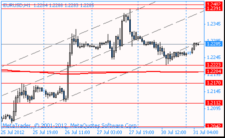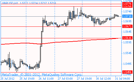 The pound fell after the Bank of England data showed that the number of approved applications for mortgages fell in June, reflecting economic weakness in the month due to the extra holidays and a very wet weather. Consumer lending on credit cards has increased, but the mortgage lending for house purchase fell to its lowest level over the past year and a half. Recall that last week, official data showed that the economic indicators in the second quarter of 2012 recorded the biggest fall since the beginning of 2009.