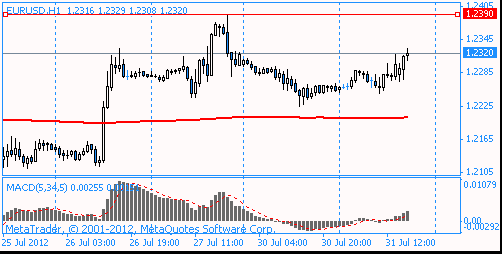 Currently the pair is trading at $ 1.2320. The nearest strong resistance level of $ 1.2390 (Jul 27 high)