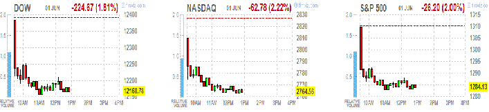 National benchmark indexes fell in all of the 18 western European markets today. Germany’s DAX dropped 3.4 percent, the U.K.’s FTSE 100 slid 1.1 percent, while France’s CAC 40 declined 2.2 percent.