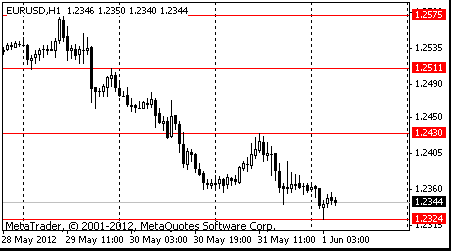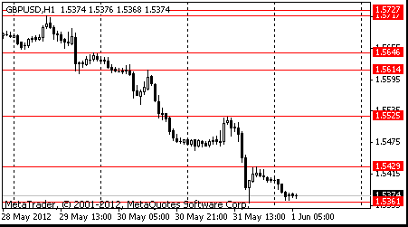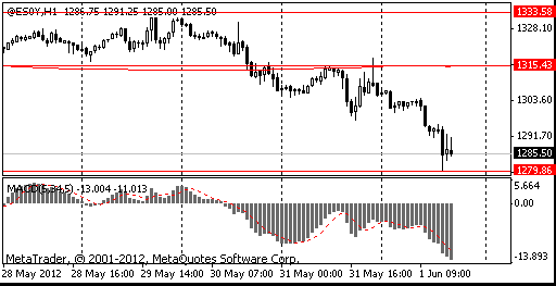 Investors' concerns continues to be the U.S. labor market. After a weak social statistics on the eve of the data published on Friday, also proved to be worse than expected. Thus, the U.S. unemployment rate in May rose to 8.2% from 8.1% in April, and the number of jobs in nonagricultural sectors of the economy increased by only 69,000. The analysts expect to maintain the level of unemployment in the 8.1% increase in the number of jobs in non-agricultural sector at 150,000.