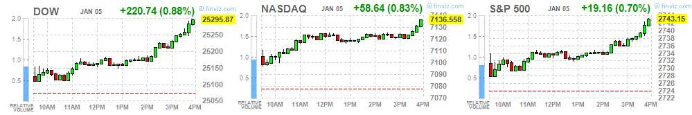 The main US stock indexes rose to record highs against the background of labor market data, which showed that in December, job growth in the country slowed more than expected, amid a decline in employment in retail trade, while the growth in monthly wages accelerated.