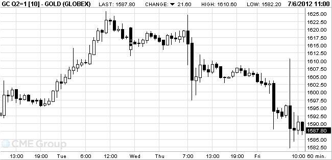 Gold prices eventually declined due to the growth of the dollar against the euro after the publication of a report on employment in the U.S. in June, which demonstrated a smaller increase in the number of jobs in non-agricultural sectors than expected.