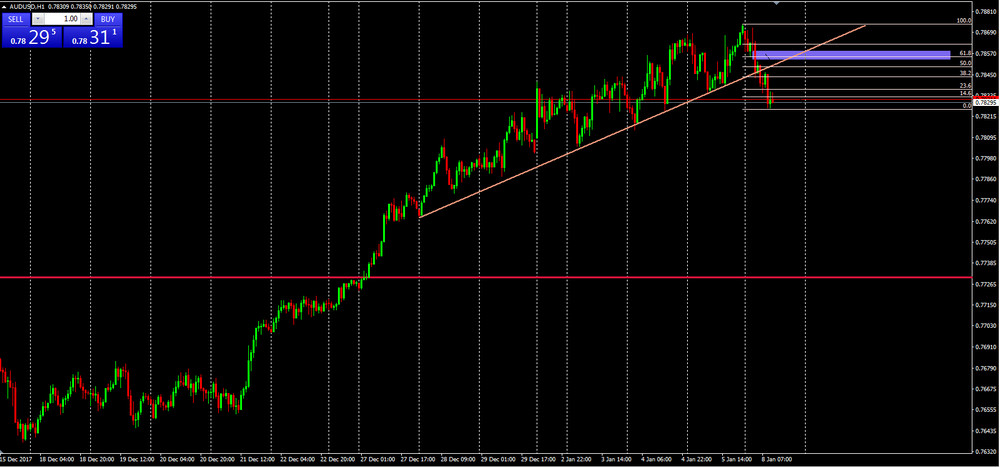 AUD/USD has recently broken a upside trend line.