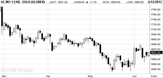 The price of gold rising against the backdrop of withdrawal of investors from risky assets due to concerns about whether the financial assistance of the banking system in Spain would not be able to contain the spread of the debt crisis in the eurozone.