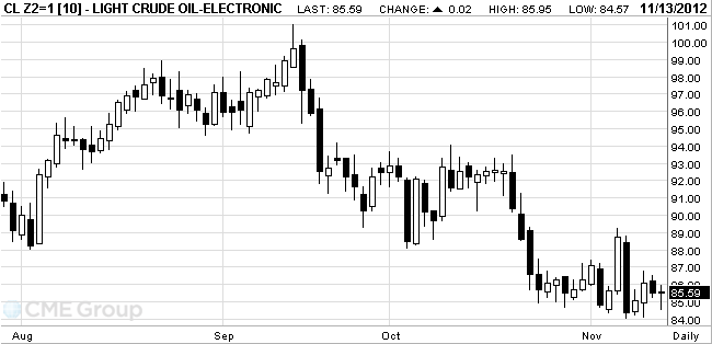 December futures price of U.S. light crude oil WTI (Light Sweet Crude Oil) fell to 84.57 dollars per barrel, and then rose to 85.95 dollars a barrel on the New York Mercantile Exchange.