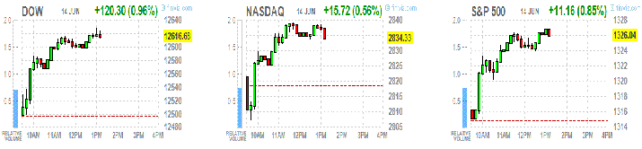 The S&P 500 briefly rose as banks rallied. JPMorgan (JPM) jumped 1.6% to $34.30 as Chief Executive Officer Jamie Dimon testified about his bank’s $2 billion trading loss. He said a switch to a new risk model in the first quarter may have helped fuel the loss, and the bank has shifted back to the old system.
