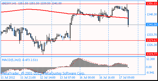 The euro showed growth against the euro during the session, but declined after weak data out of sentiment index in the business environment of the institute ZEW, which fell to -19.6 in July to -16.9 in June.