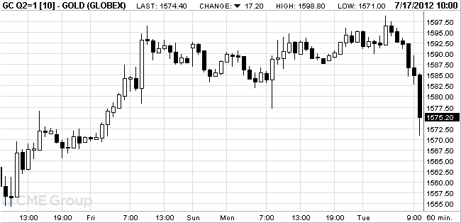 August gold futures on the COMEX today fell to 1571.0 dollars per ounce.