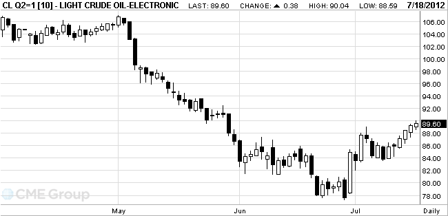 Oil for August delivery rose to $90.04, the highest level since May 30. Prices are down 9 percent this year.