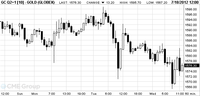 August gold futures on the COMEX is trading today in the range of 1567.2 - 1585.7 dollars per ounce.