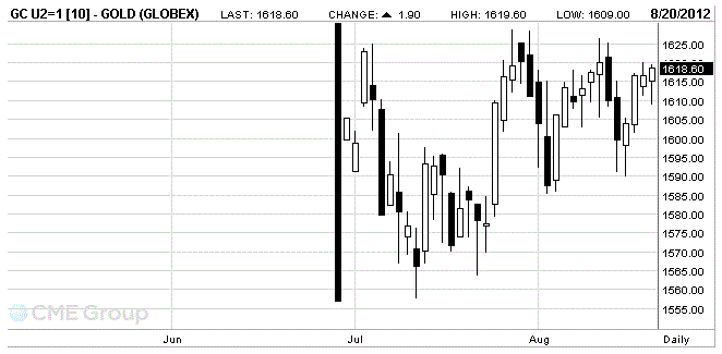 September futures price of gold on the COMEX is now 1618.6 dollars per ounce.
