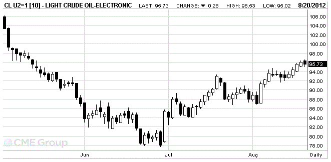 September futures price of U.S. light crude oil WTI (Light Sweet Crude Oil) on the NYMEX is now $ 95.71 per barrel.