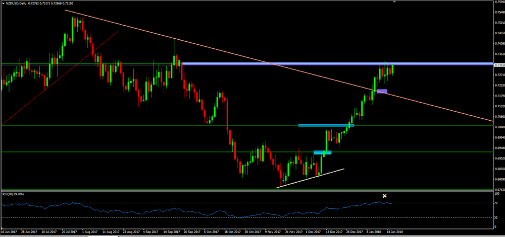 On daily time frame chart, we can see that NZD/USD has been follwing a strong bullish trend on the last few weeks.