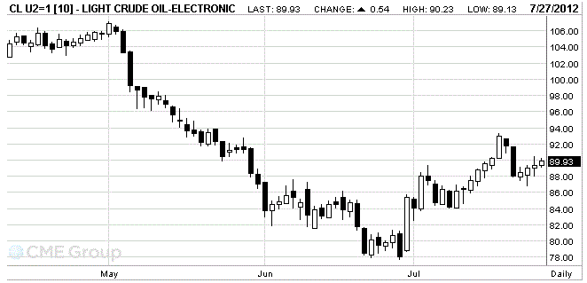 The cost of the September futures on U.S. light crude oil WTI (Light Sweet Crude Oil) on the NYMEX is now at $ 90.02 a barrel.