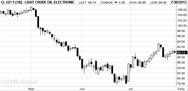 Crude oil for September delivery fell to $89.40 a barrel on the New York Mercantile Exchange.